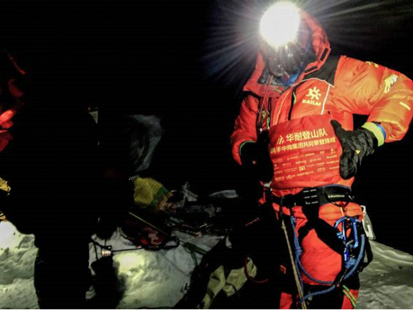 华耐登山队将合作品牌旗帜带到海拔8844米的珠峰之顶