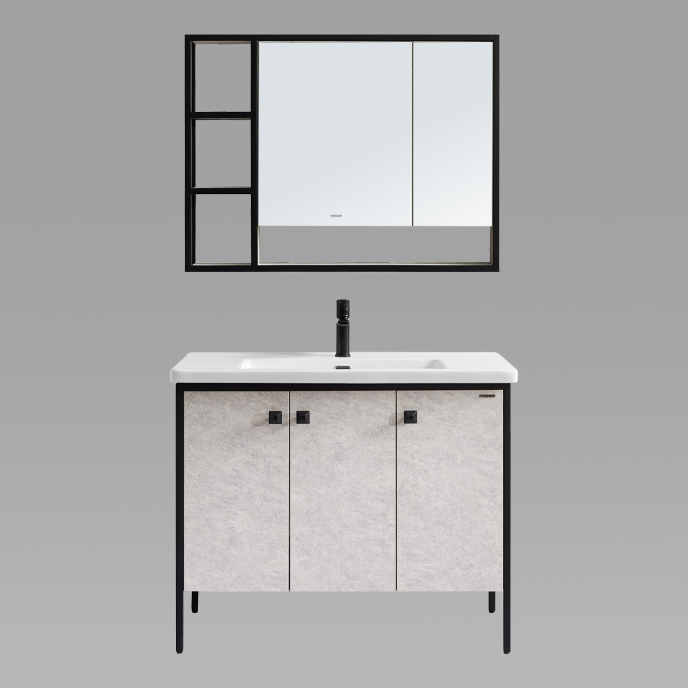 ●清水墙般的水泥纹理搭配黑色金属铁艺设计,后现代工业风格,一款打破设计格局的浴柜;
