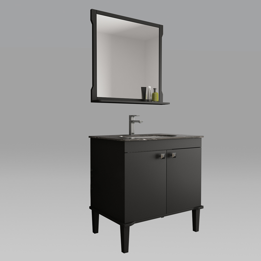 ●哑黑色调主柜设计,大容量储物空间,演绎浴室的浪漫与轻奢;